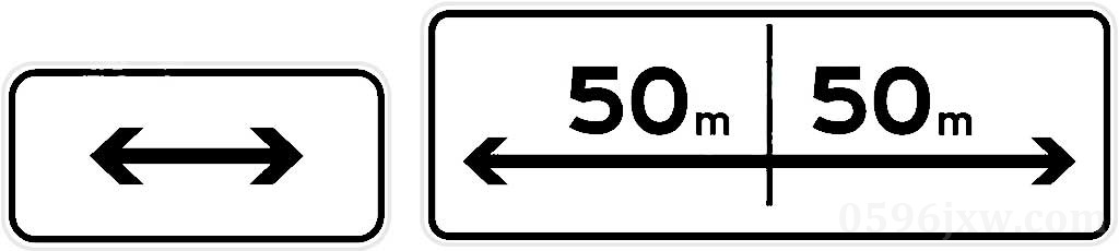辅助标志 向左、向右各50m 标志