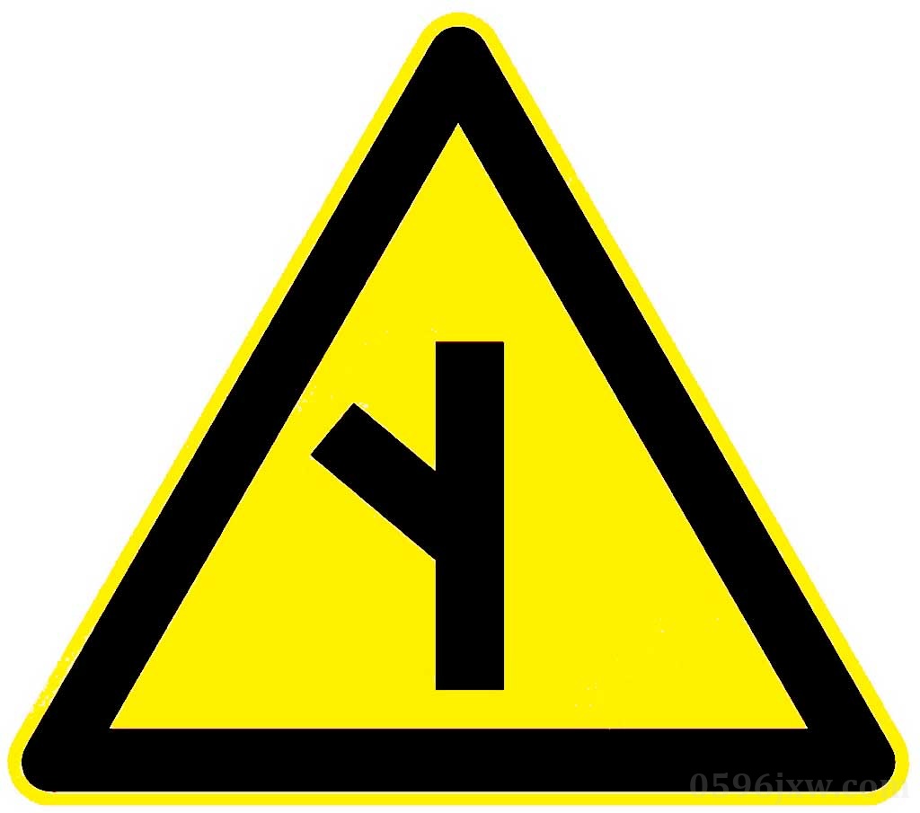 设在Y形路口之前的适当位置。主干道前方有右侧分支道路。