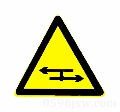 警告标志 注意分离式道路:丁字平面交叉(删除) 标志