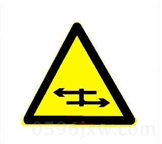 警告标志 注意分离式道路:十字平面交叉(删除) 标志