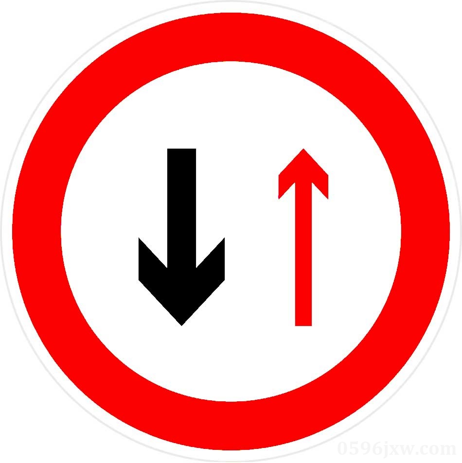 表示车辆会车时,必须停车让对方车先行。设置在会车有困难的狭窄路段的一端或由于某种原因只能开放大一条车道作双向通行路段的一端。