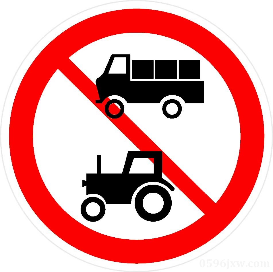 表示禁止某两种车驶入。此标志设在禁止图标上的某两种车辆驶入的路段入口。