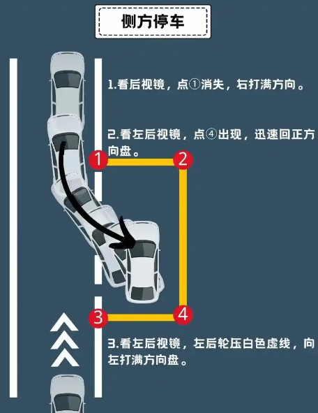 - 学员需展示在侧路停车时的判断能力与停车技巧,让车辆能够顺利安全地停在指定的停车位内。