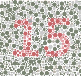 正常色觉的人看到的应该是数字15,色盲的人看不到任何数字。