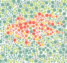 色觉正常的人辨认结果是兔子和鸭子。色觉异常的人辨认结果是鸭子,红绿色觉异常,检测出红色盲,部分色弱。