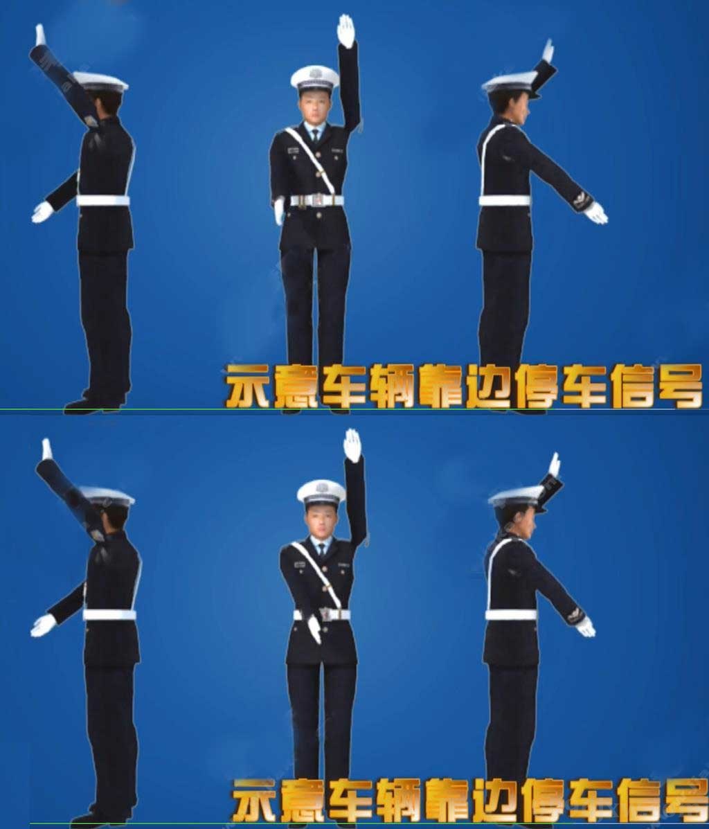 交警手势 示意车辆靠边停车信号