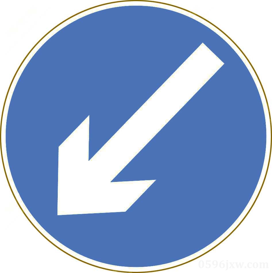 表示一切车辆只准在分隔设施的左侧行驶。设在交通岛、行人二次过街安全岛、中央分隔带等设施的端部。