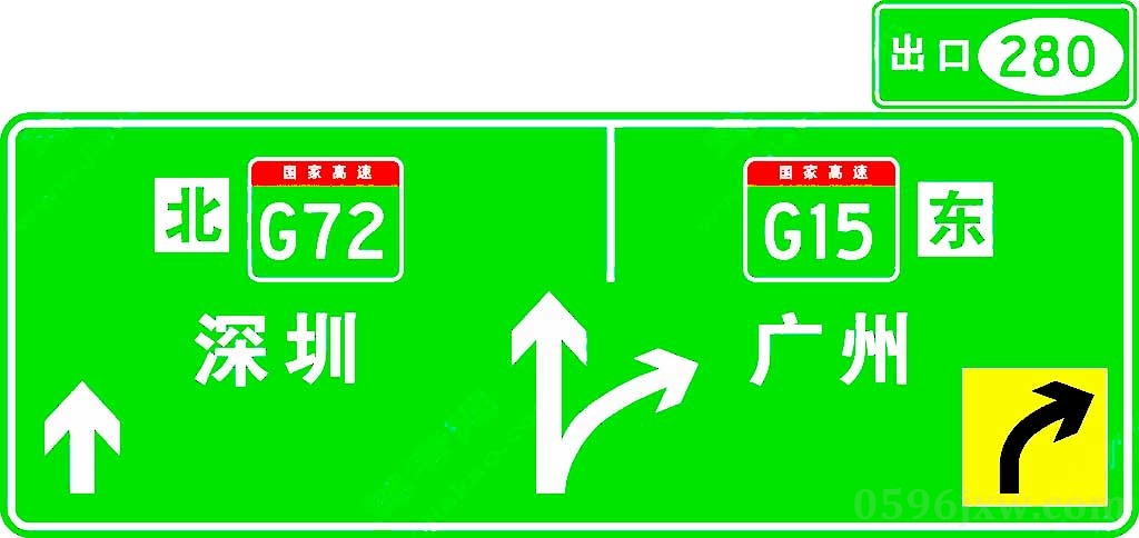 用以预告高速公路或城市快速路终点,设在距离高速公路或城市快速路终点前 2 km、1 km,500 m 处,无编号的高速公路或城市快速路终点预告,与其他高速公路或城市快速路相接时,可不设置终点预告标志。