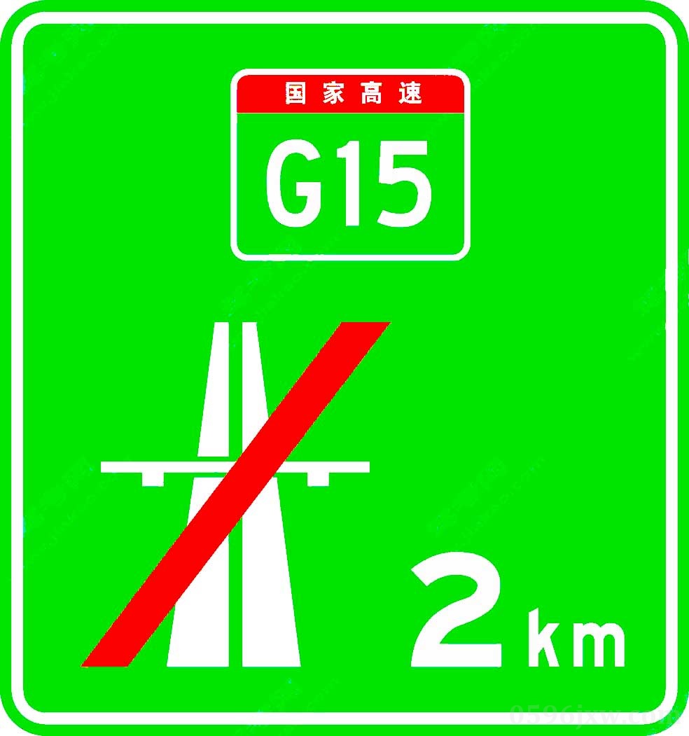 用以预告高速公路或城市快速路终点,设在距离高速公路或城市快速路终点前 2 km、1 km,500 m 处,无编号的高速公路或城市快速路终点预告,与其他高速公路或城市快速路相接时,可不设置终点预告标志。