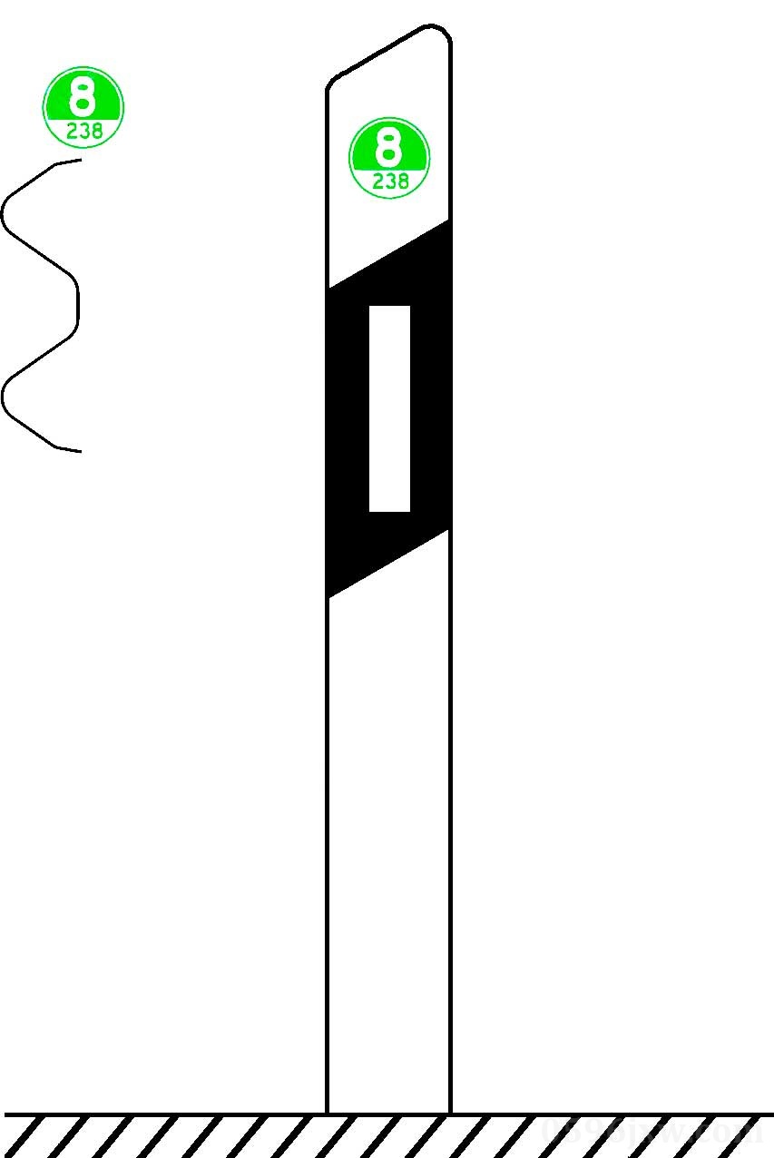 用于指示距出事点最近紧急电话的方向及距离,设在高速公路沿线各紧急电话之间相应位置。