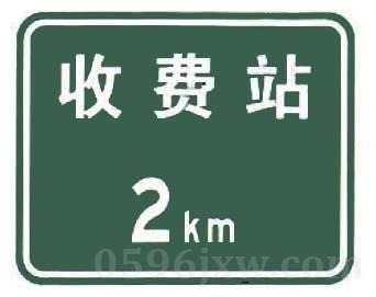用以指示前方收费站。设在高速公路、城市快速路主线上距收费广场渐变段起点2km处。
