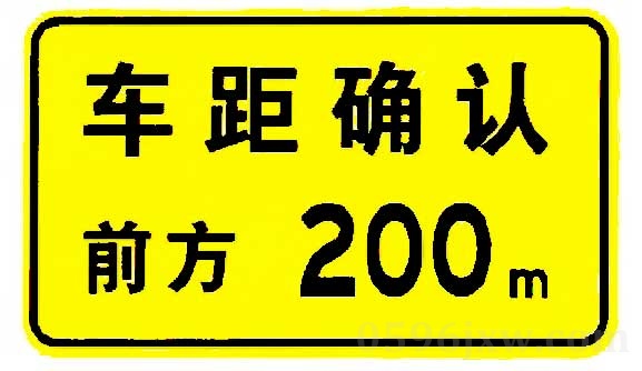用以帮助驾驶员确认与前车的距离。当高速公路或城市快速路两相邻立交间距大于10 km时,在其间无其他指路标志的平直路段上可设置车距确认标志。设在平直路段适当位置处。