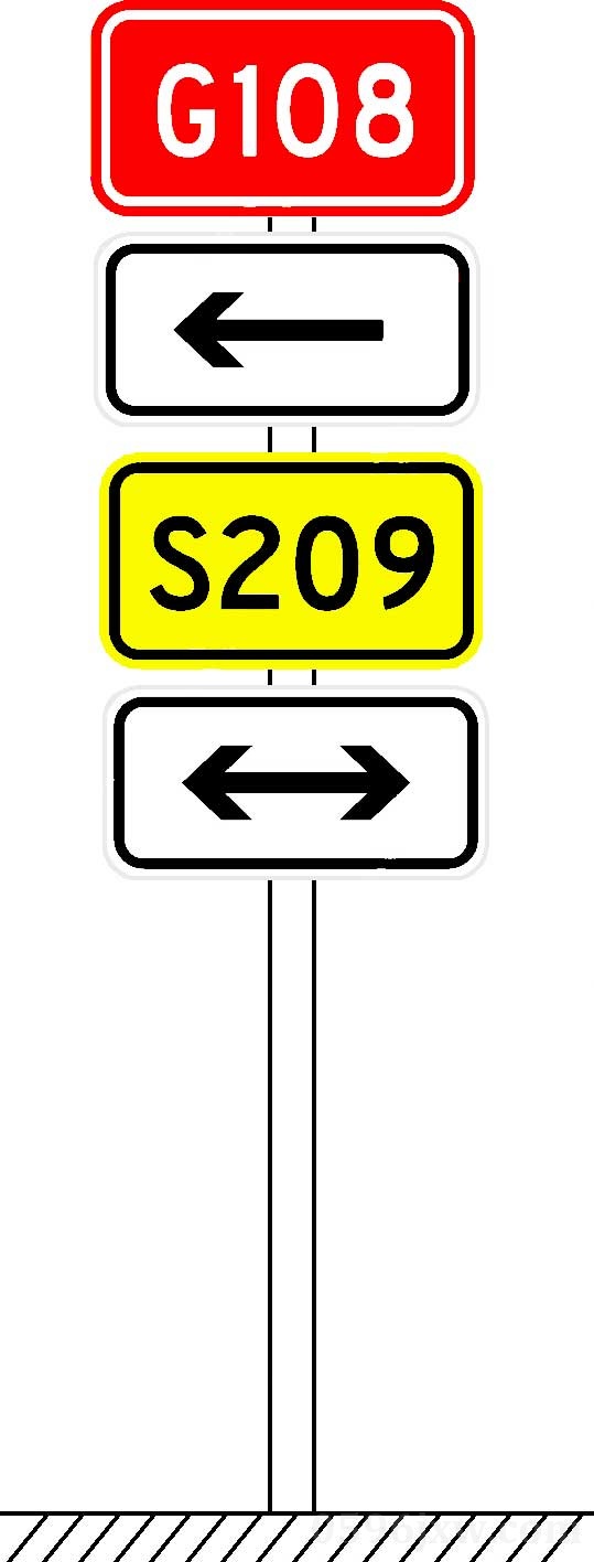 可采用单柱标志预告前方交叉道路编号,设在距交叉路口前120m--300m处。