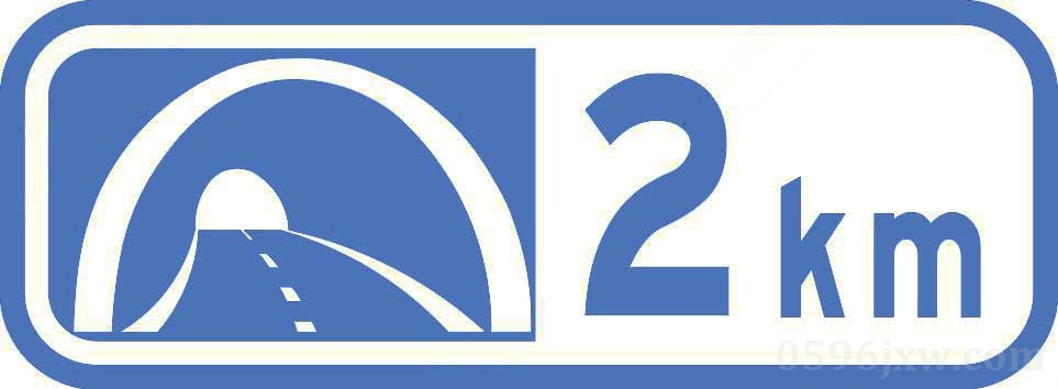 用以告知到前方隧道出口的距离,长度超过5km的特长隧道内,从距离隧道出口3km处起,可设置3km、2km、1km的隧道出口距离标志,可设在隧道顶部、侧壁或紧急停车带迎车面的洞壁.版面中隧道曲线的转弯方向应与实际情况相对应。