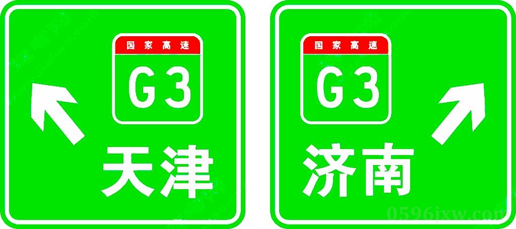 用于指示高速公路或城市快速路两个行驶方向,设在驶入高速公路或城市快速路的匝道分岔点处。在目的地信息之上,可增加前往高速公路的编号信息。