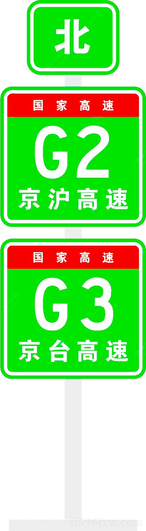 用以指引高速公路的名称与编号,设在高速公路互通式立体交叉加速车道的渐变段终点后适当位置作为确认标志,也可在主线重复设置。根据路线总体走向可增加地理方位信息,也可增加地点表示的方向信息。