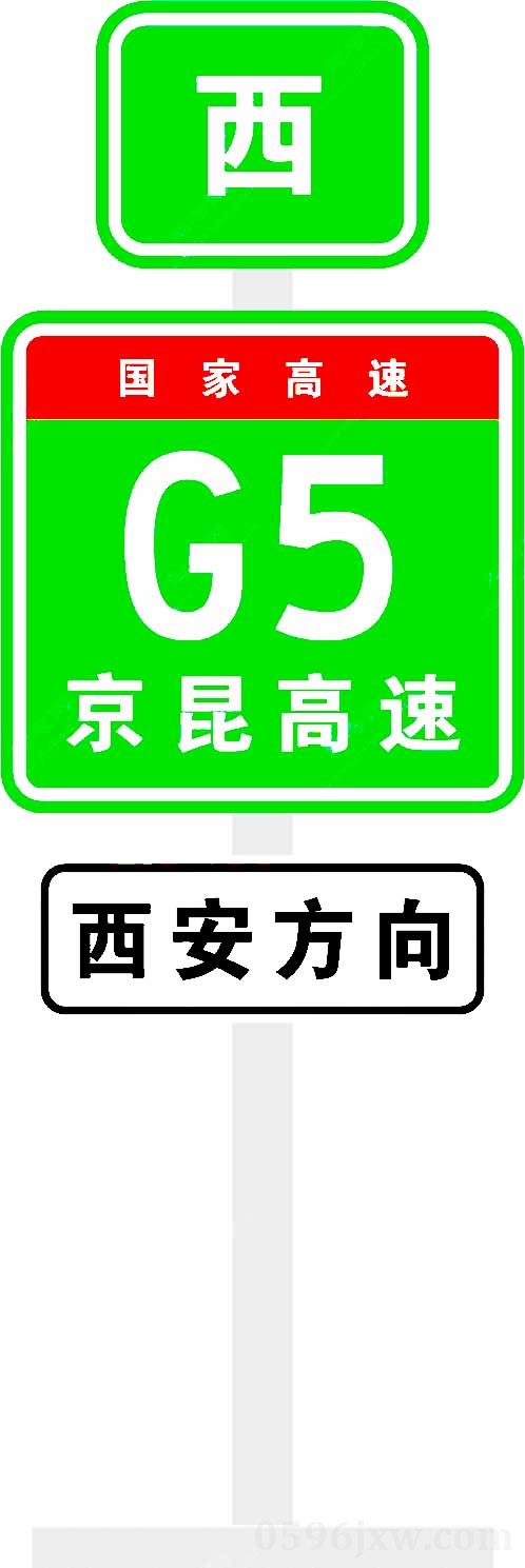 用以指引高速公路的名称与编号,设在高速公路互通式立体交叉加速车道的渐变段终点后适当位置作为确认标志,也可在主线重复设置。根据路线总体走向可增加地理方位信息,也可增加地点表示的方向信息。
