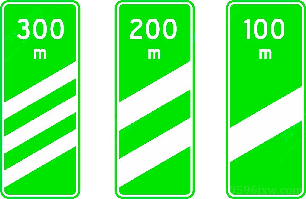 用以预告距离出口 300m,200m,100m,有条件时设置在距枢纽互通式立体交叉的基准点 300m、200m、100m 处