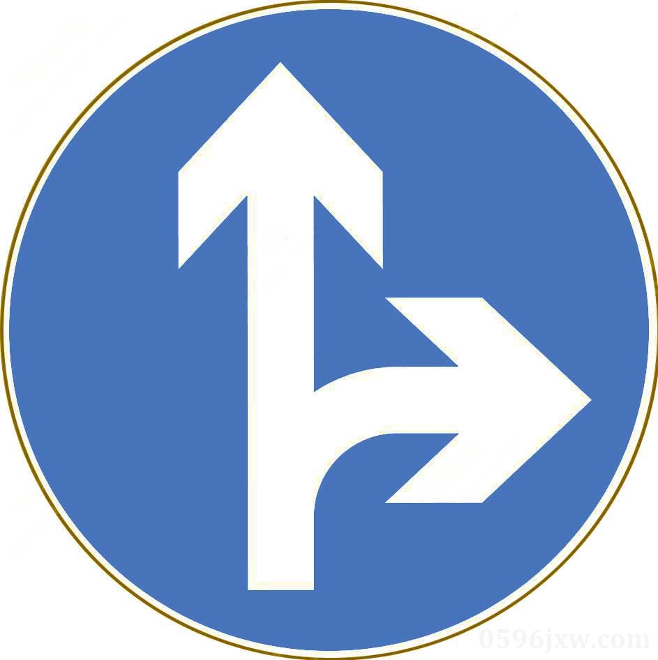 指示标志 直行和向右转弯 标志