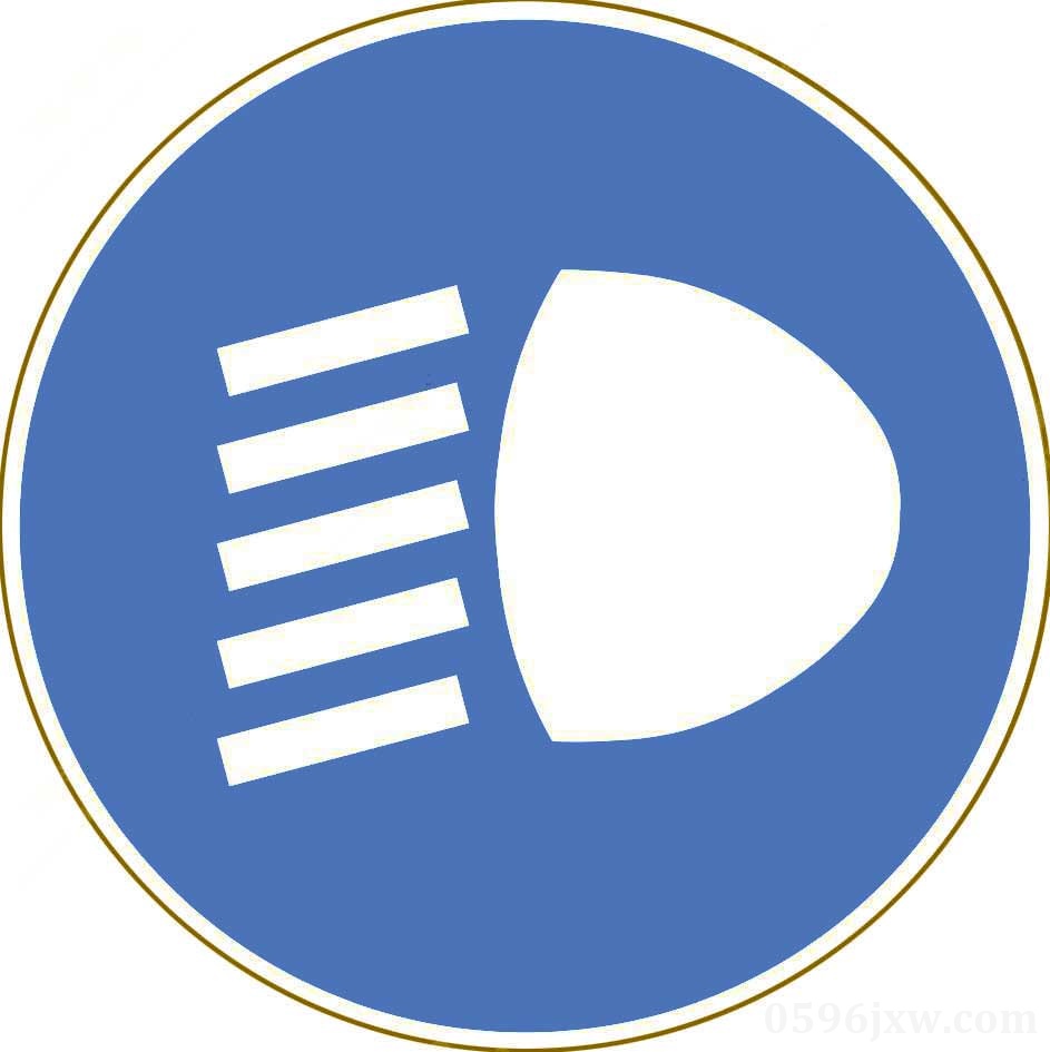 表示机动车行至该标志处应开启车灯,设在隧道口前等需要开车灯处。
